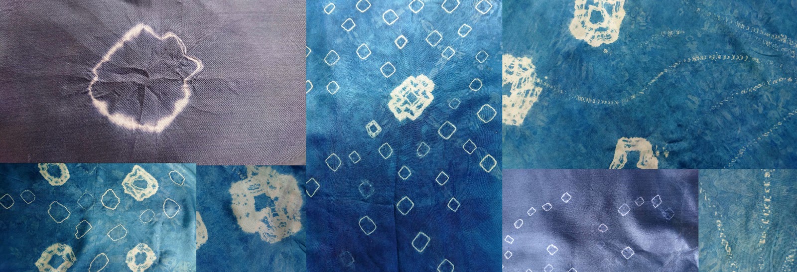 Samples of work from participants in the Shibori dyeing workshop with Ann Hayward |
